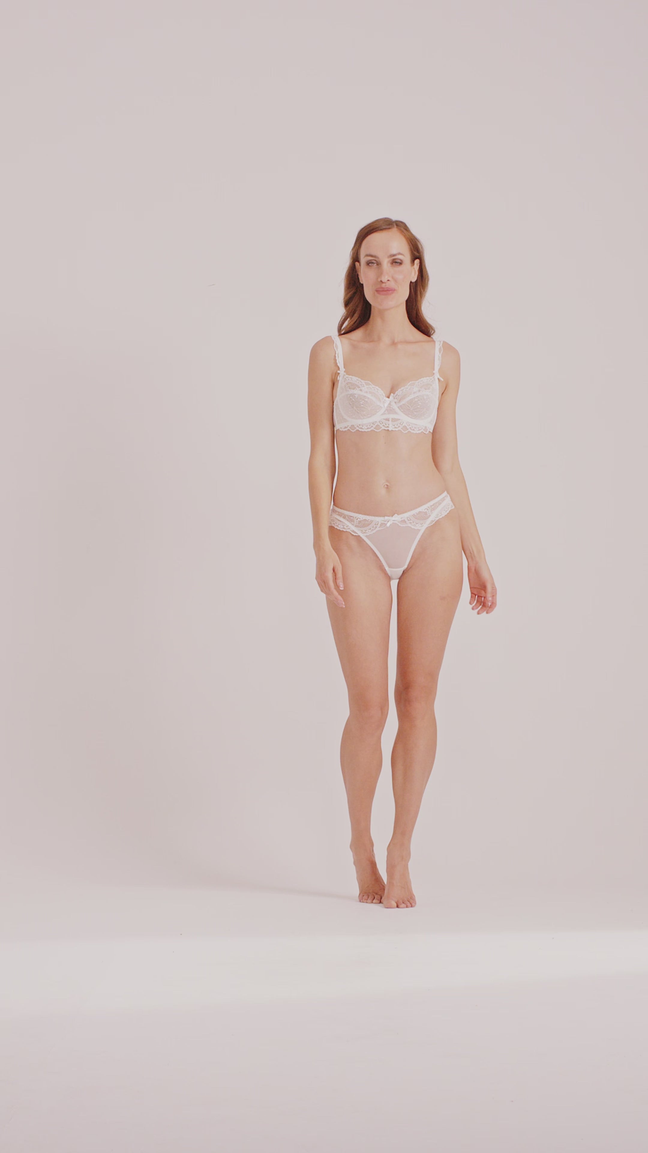 Das Dessous-Set „White Obsession“ strahlt pure Eleganz und zeitlose Sinnlichkeit aus. Gefertigt in edlem weiß, überzeugt der BH mit zarten Spitzendetails an den Trägern und einer eleganten Schleife in der Mitte der Brust, die dem Design eine romantische Note verleiht. Leicht transparente Einsätze oberhalb der Cups sorgen für feine Verführung, während das formschöne Körbchen die Brust wunderschön formt und jeder Frau eine natürliche, schmeichelhafte Silhouette schenkt. Die helle Farbgebung unterstreicht die Sanftheit und Frische des Designs. „White Obsession“ ist ideal für Frauen, die schlichte Schönheit und feminine Leichtigkeit lieben.