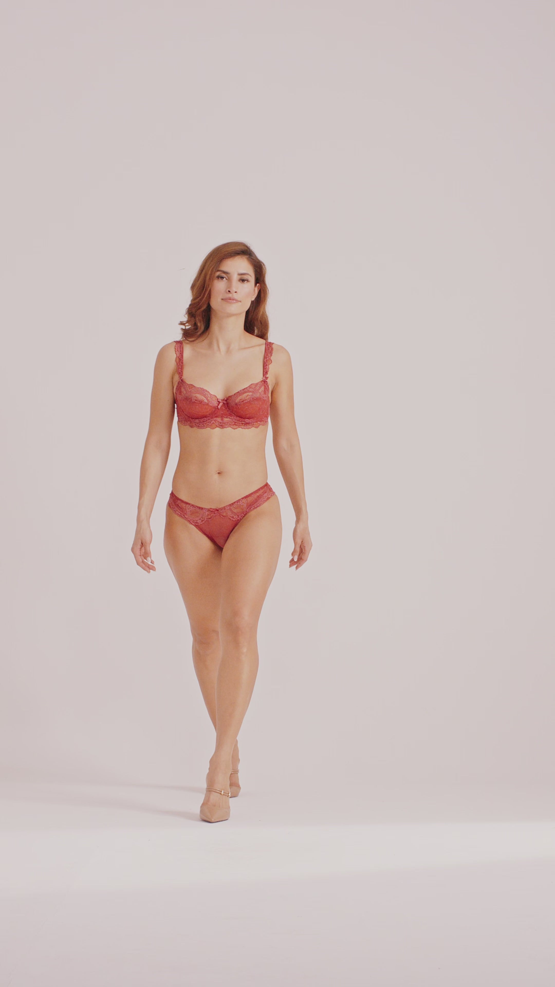 Das Dessous-Set „Pure Obsession“ vereint stilvolle Raffinesse mit verführerischer Leichtigkeit. Der BH ist aus einem edlen hellen Rotbraun gefertigt und wird durch feine Spitzendetails an den Trägern und eine elegante Schleife in der Mitter der Brust charmant ergänzt. Leicht transparente Einsätze oberhalb der Cups sorgen für einen sinnlichen Touch, während das formschöne Körbchen die Brust sanft anhebt und jeder Frau eine schöne, natürliche Silhouette verleiht. Die warme, außergewöhnliche Farbgebung unterstreicht die besondere Ausstrahlung des Sets. „Pure Obsession“ ist ideal für Frauen, die sich feminin, edel und selbstbewusst zeigen möchten.