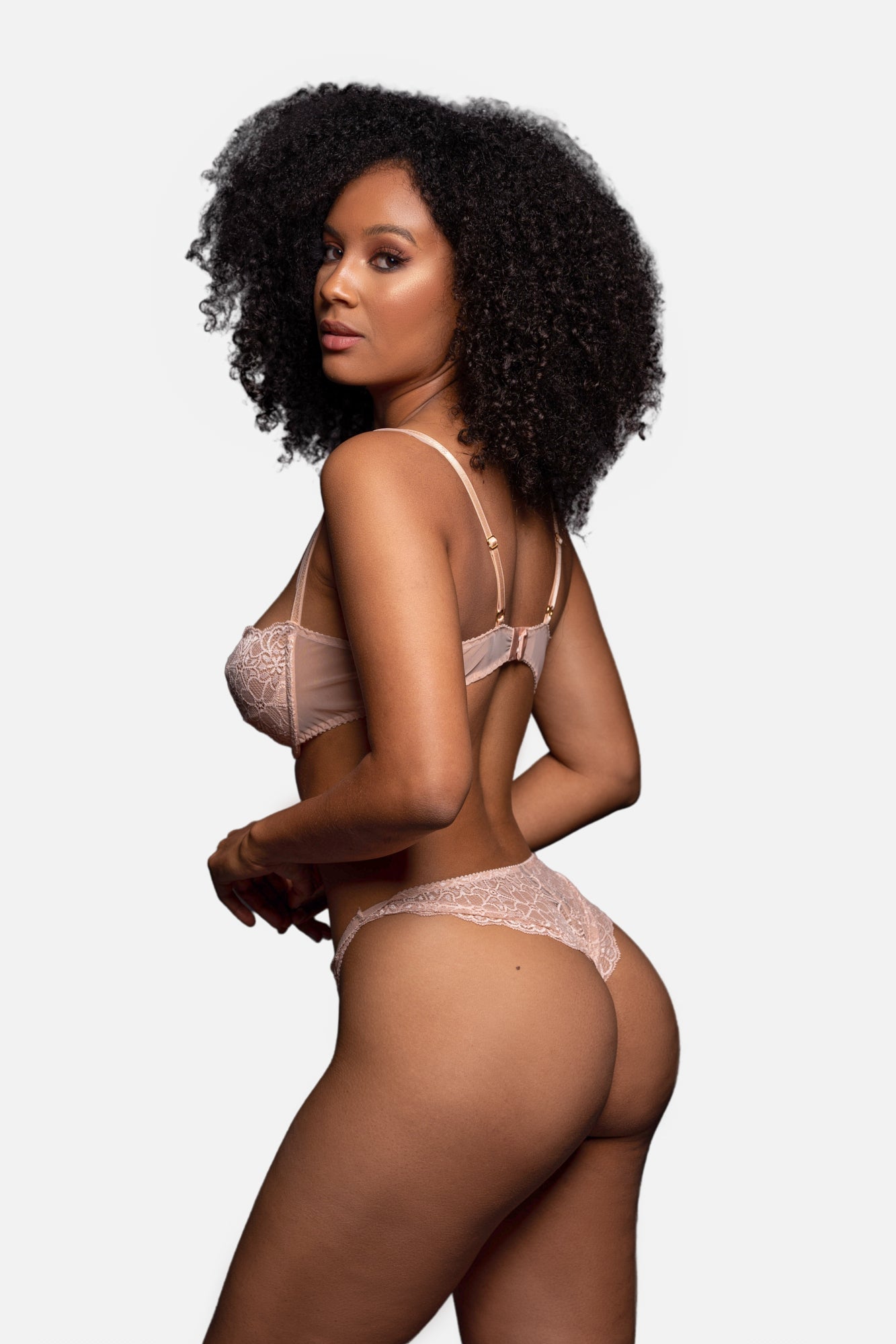 Der BH bildet den Eye-Catcher und wird durch den passenden champagnerfarbenen Zierstein zum Highlight. Der halbe Cup schenkt der Brust die perfekte Form und zaubert ein faszinierendes Decollete.