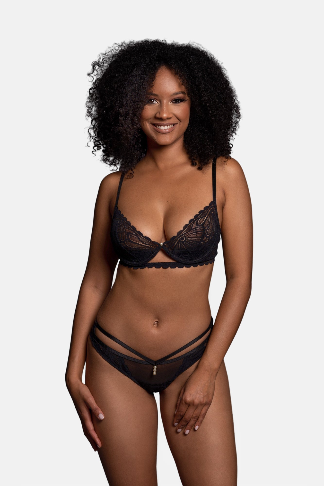Das Dekolleté bildet den Eye-Catcher und verleiht einen kostbaren eleganten Touch mit einer Perle in der Mitte. Der halbe Cup schenkt der Brust die perfekte Form und zaubert einen faszinierenden Effekt auf nackter Haut.